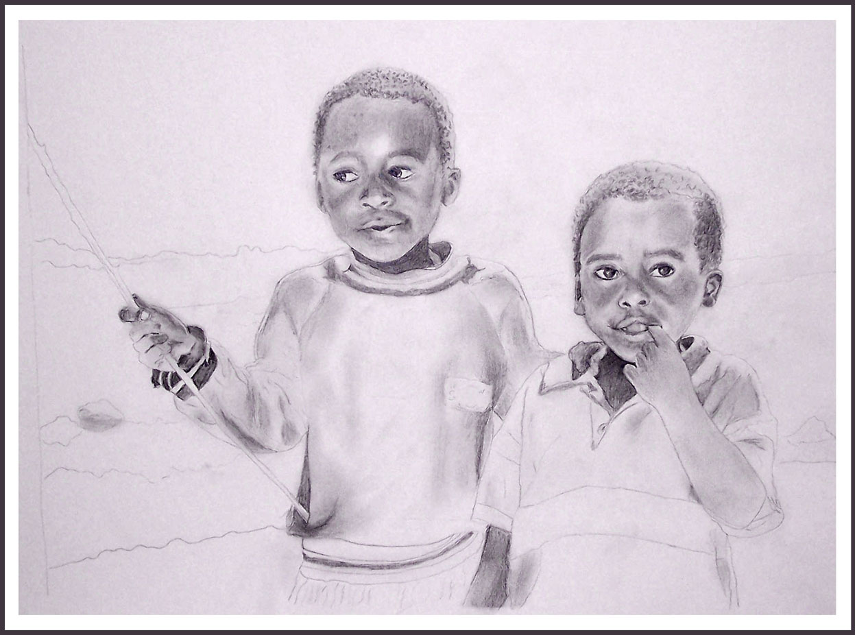 Afrikanische Jungen "Ohne Worte..." (Noch unvollendete Zeichnung /Bild in Arbeit - Phase 2) Winter 2007